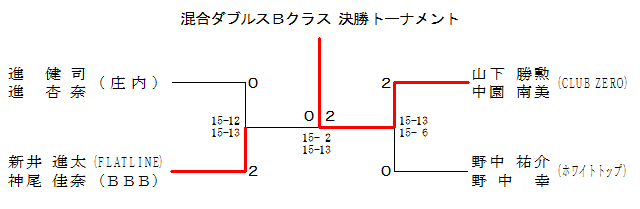 | 混合ダブルスBクラス Cブロック | 進 進 | 山本 山本 | 村坂 村坂 | 田中 入江 | 順位 |